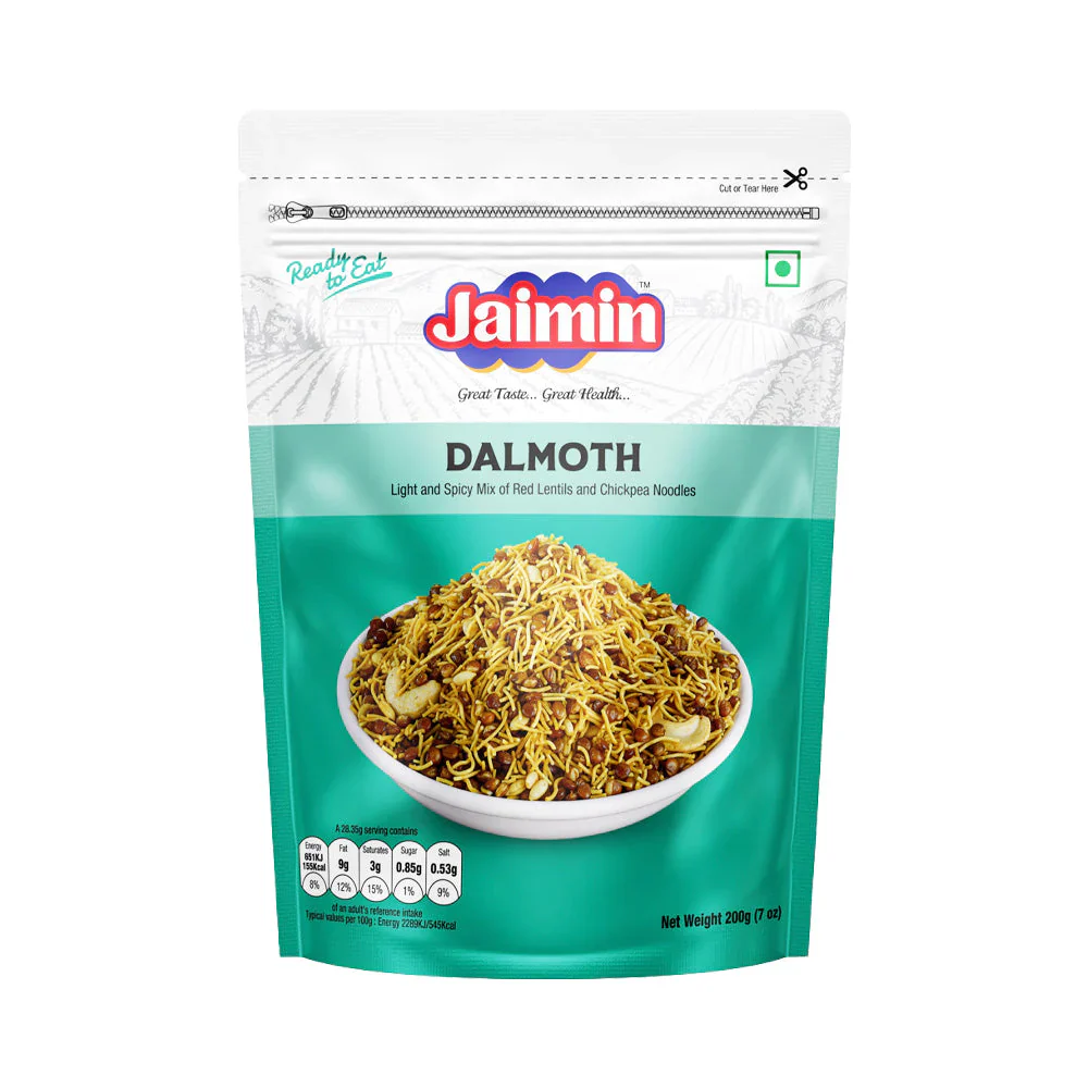 UR LOCAL Convenience Store brings you Jaimin Dalmoth 200g, a crunchy and flavorful mix of lentils, nuts, and spices, perfect for tea-time snacking or anytime cravings.