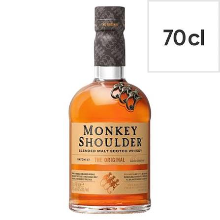 Monkey Shoulder 70cl is a smooth, triple-malted blended Scotch whisky with rich notes of vanilla, honey, and gentle spice. Perfect for sipping neat, on the rocks, or in premium cocktails.
