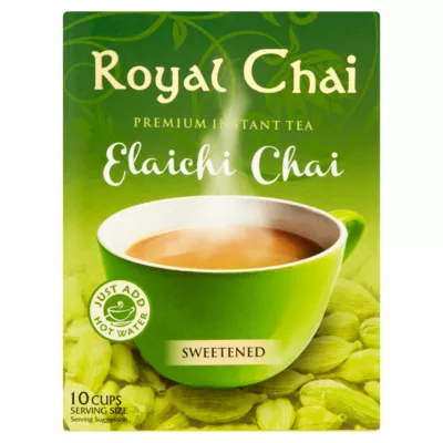 Ur Local Convenience Store brings you Royal Chai Elaichi Sweetened 10 cups, a fragrant and flavorful tea with a hint of cardamom, ready to enjoy anytime.