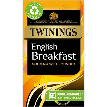 Ur Local Convenience Store brings you Twinings English Breakfast 40 Tea Bags 100g, a full-bodied and robust black tea, perfect for a classic and invigorating cup anytime.
